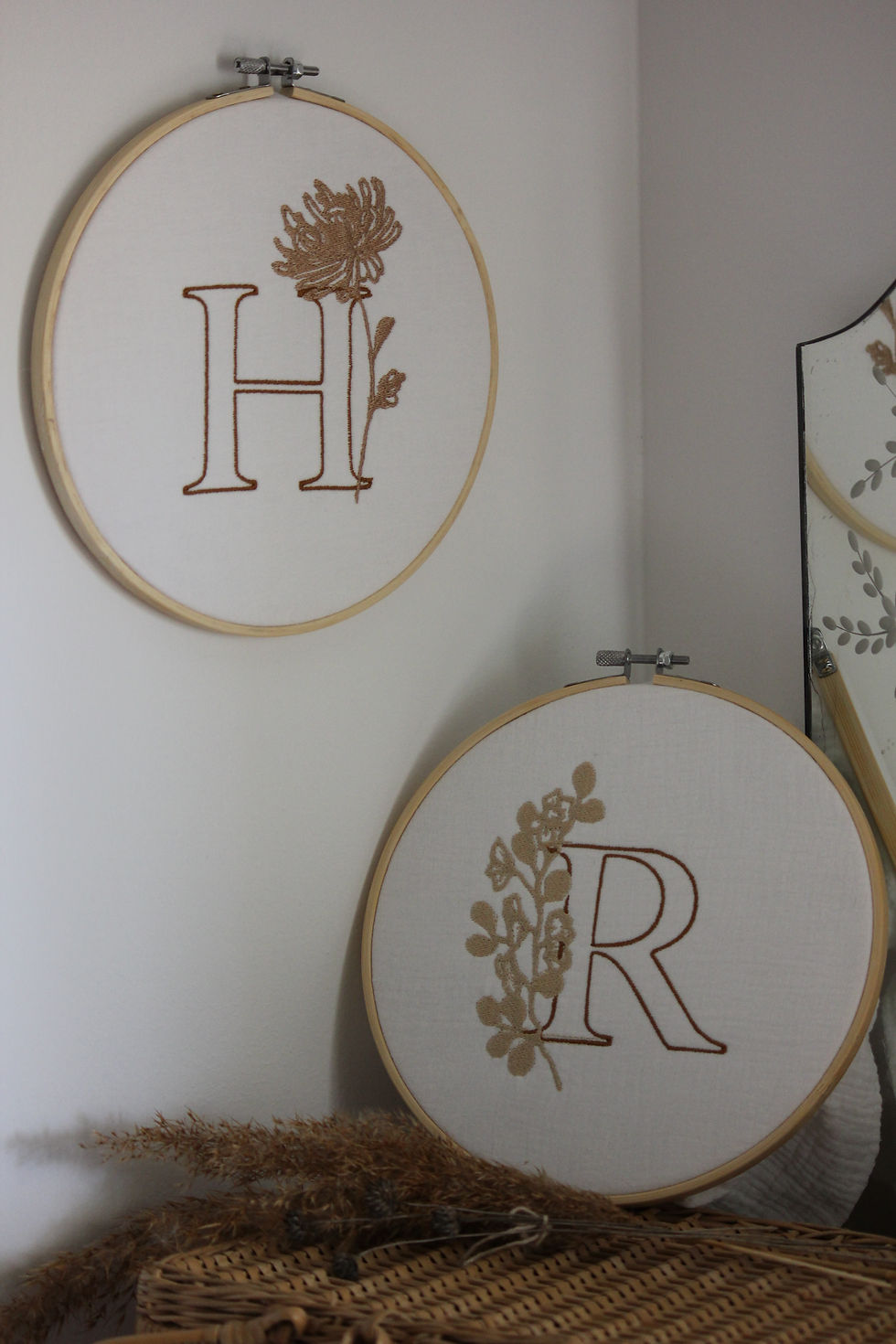 Tambourin INITIALE + FLEUR DE NAISSANCE - 18cm